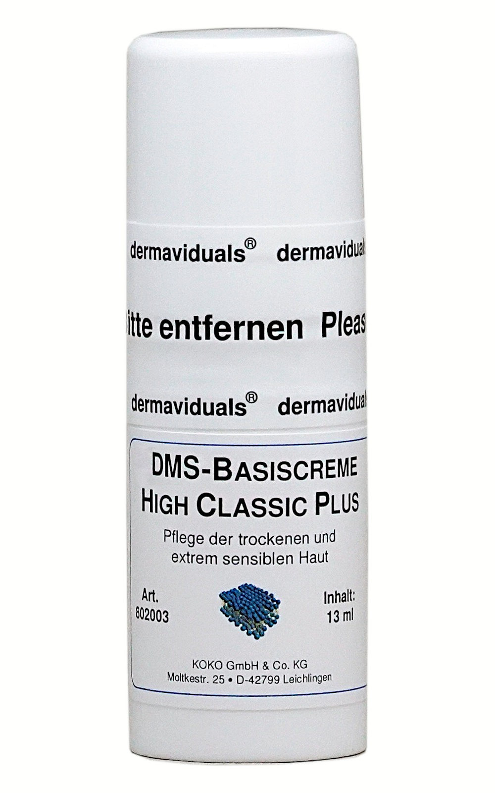 Wenn sich die Haut in einer Umstellungsphase von mineralöl- und emulgatorhaltigen Präparaten auf DMS-Präparate befindet, kann es ggf. anfangs zu dem Gefühl einer etwas trockeneren Haut kommen, das nachfolgend durch das Gefühl einer angenehm weichen, feinporigen Hautoberfläche abgelöst wird. In die 13ml Cremespender können bis zu 2 ml Wirkstoffkonzentrate kalt eingerührt werden.